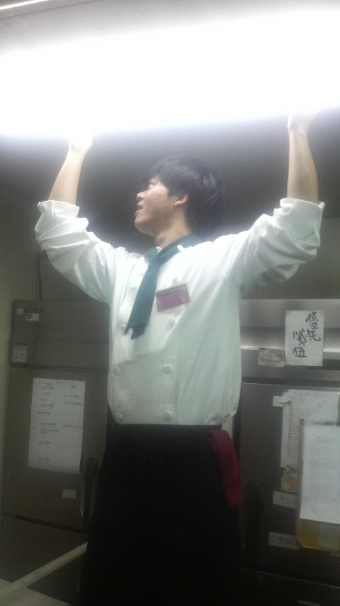 今日キッチン内の電球が切れて島袋さんが変えてくれました。テンキュウ(笑)